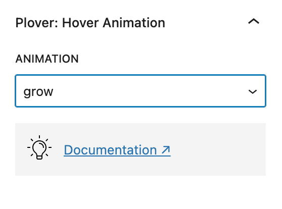 In the sidebar of a block that supports hover animation, you can find the Hover Animation panel and select an animation to enable it.